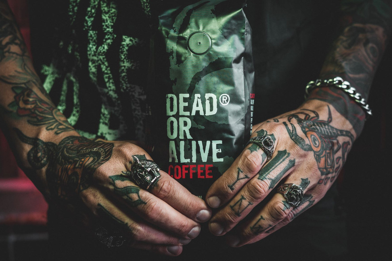 Only high-quality coffee beans with excellent aroma make it into our packaging. Our blends consist primarily of Robusta beans, meaning they all contain over 2% caffeine—making it one of the strongest coffees in the world! At the same time, DEAD OR ALIVE COFFEE impresses with Italian aroma, free of bitterness and with only a low acidity level. Strong coffee with character—just like us!